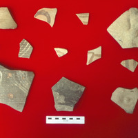 Jordan. Umayyad Red painted and white painted sherds from 'Araq Abu ez-Zeit