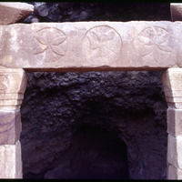 Deir Ayn Abata - linter over cave entrance with crosses in relief