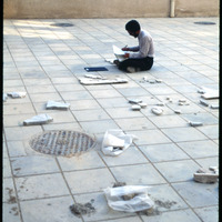 Humeima Excavation Project - People shot, Robert Schick in reverance of his marble