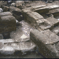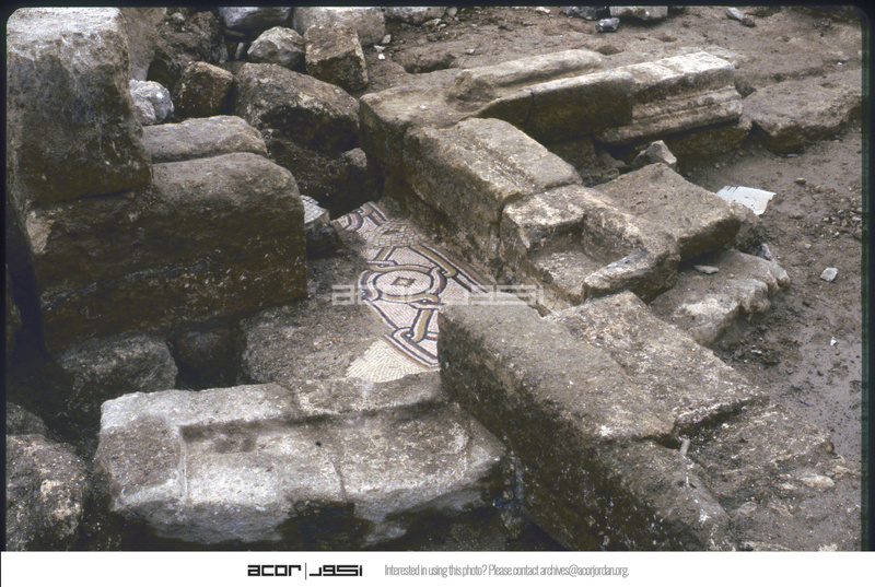 Excavation of the lower church in el-Quweisma - view to north of lower mosaic in northwest corner of the southest room