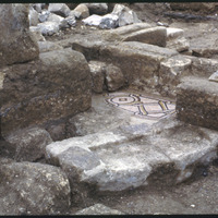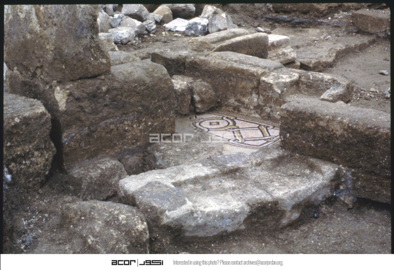 Excavation of the lower church in el-Quweisma - view to north of lower mosaic in northwest corner of the southest room