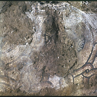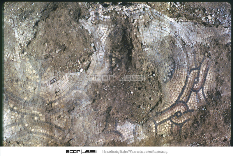 Excavation of the lower church in el-Quweisma - view to north of lower mosaic in northwest corner of the southest room