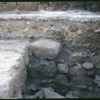 Excavation of the lower church in el-Quweisma - view to the east of balk section in southeast corner of the southeast room
