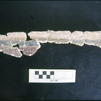 Excavation of the lower church in Qweismeh, 1989 - broken fragments of limestone panel