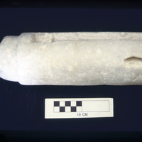 Excavation of the lower church in el-Quweisma, cylindrical colonette