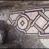 Excavation of the lower church in el-Quweisma - mosaic floor