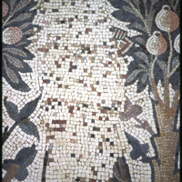 Umm al-Rasas - Church of St. Stephen - damaged mosaic of person between two fruit trees
