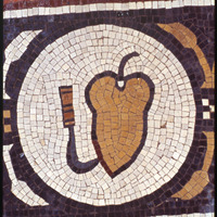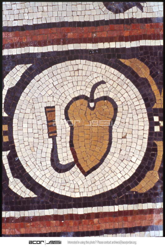 Umm al-Rases - Church of the Lions - mosaic depicting a pear[?] and knife
