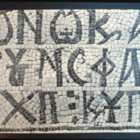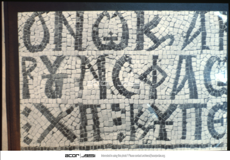 Umm al-Rasas - Detail of Greek inscription in mosaic in Church of St. Stephen