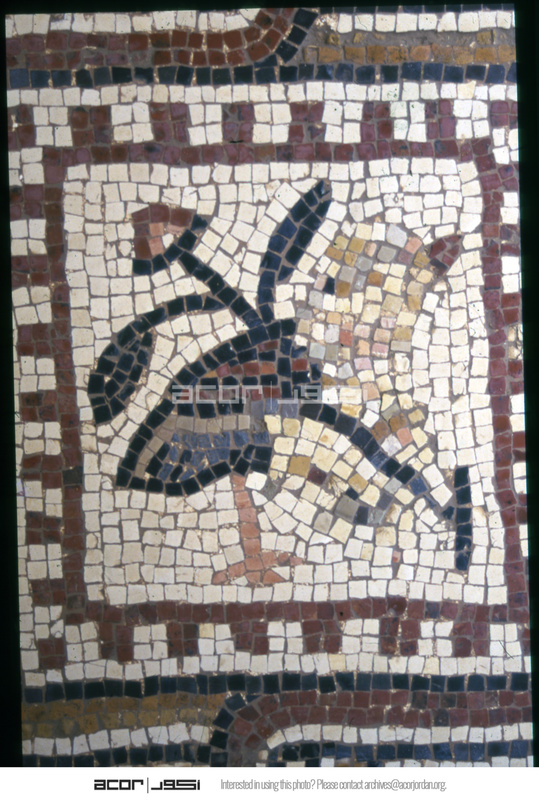 Umm er-Rasas - Church of St. Stephen - damaged mosaic of bird and plant