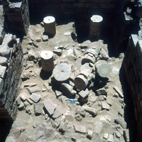 Paving stones of upper floor collapsed over baptistery. Area X. Sq. E3; Locus 30B