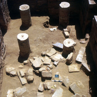 Paving stones of upper floor collapsed over baptistery. Area X. Sq. E3; Locus 30C