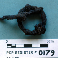 Ring with attachments; polycandelon fragment? - Sq. A3. Loc. 18