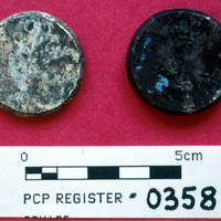 Two ashen round disks (inlay for archival box?); glass - Sq. I. Loc. 12