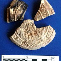 Four fragments of a figural pilgrim flask; ceramic - Sq. K4. Loc. 10