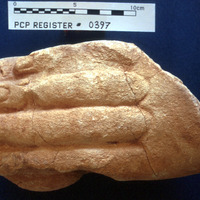Fragment of statue, hand; sandstone - Sq. L2. Loc. 02
