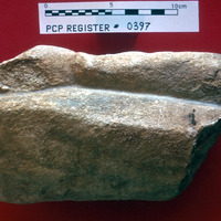 Fragment of statue, hand; sandstone - Sq. L2. Loc. 02