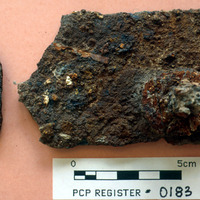 Plate fragment with nail; iron - Sq. H4. Loc. 28