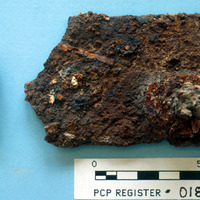 Plate fragment with nail; iron - Sq. H4. Loc. 28