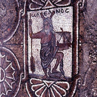 Mosaic depicting a fisherman with caught fish - South Aisle. Row 2/# 3. - View to north.