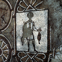 Mosaic depicting a fowler with his falcon - South Aisle. Row 2/# 7. - View to north.
