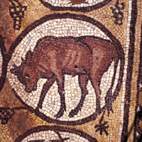Mosaic depicting a bull - North Aisle