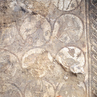 Mosaic - North Aisle. Pre-clean. View from above (to east).