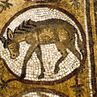 Mosaic depicting a donkey - North Aisle. View from above (to east)