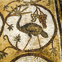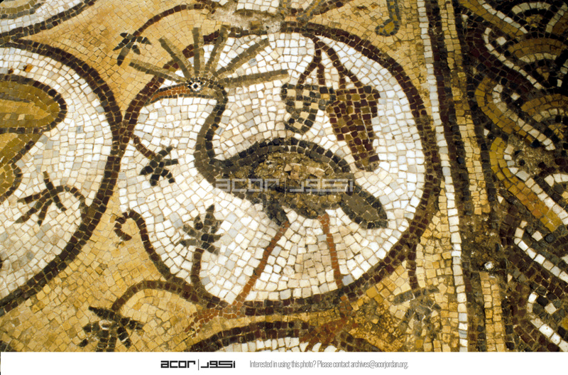 Mosaic depicting a crowned crane or phoenix - North Aisle. View from above (to east)