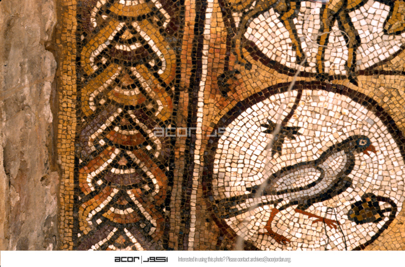 Mosaic depicting a dove - North Aisle. General view from above of Row 1 & Row 2.