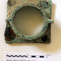 Reg #PCP.0114. Cu/Cu alloy door fitting w/iron nails. - Sq. K3. Studio. Locus 25A/Pail 60/FN1.