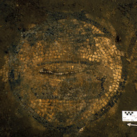 Shows salt damage to glass tesserae. View to east. - Sq. H4. Mosaic Rondelle