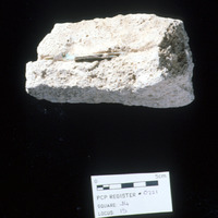 Plaster window frame with glass attached. ***35-36 mag.1:2***37-38 groove for glass. - Sq. J4. Studio. Locus 15/Pail 29/FN2. Reg #PCP.0221