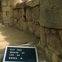 Wall damage / pre-restoration. View to south-east. - Sq. A3. Locus 06.