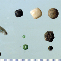 Studio. Beads. Scale mm's. Left to right of frame. D/H/K/L.E/I/M.F.G/J/N.A/B/C.
