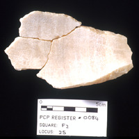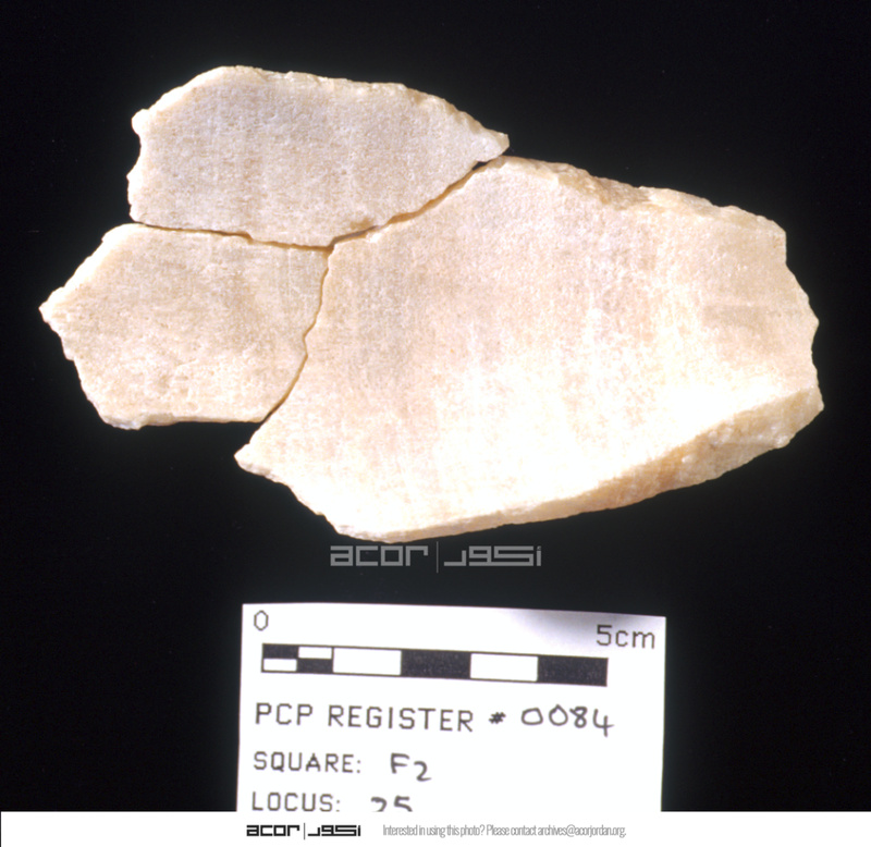 Alabaster vessel frag. - Sq. F2. Studio. Locus 25/Pail66. Reg PCP#.0084.