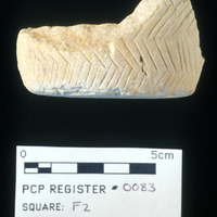 Stone vessel frag. - Sq. F2. Studio. Locus24/Pail 61.FN3. Reg. PCP#.0083.