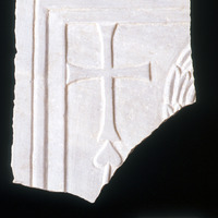- *Orginally given #.0075(to be re-assigned). Inten. Marble relief panel frag. - Sq. G4. Studio. Locus25/Pail 67. FN1. Reg.PCP#.0277