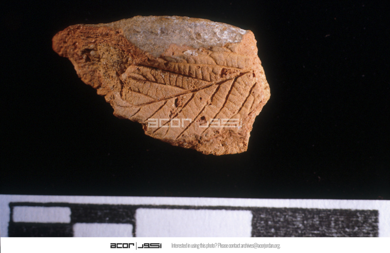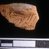 Flue frag. w/leaf impression. - Sq. A3. Studio. Locus 08/Pail 29.