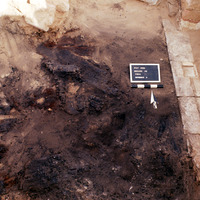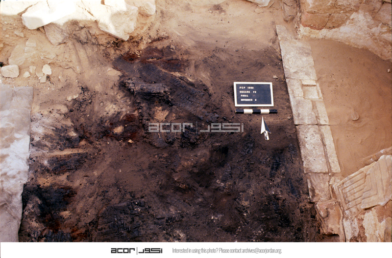 Burnt wood. Final photo of north side of Wall A. Top view to north. - Sq. F2.