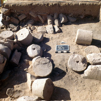 Fallen columns. View to west. - Sq. B3. Loci 05 & 06.