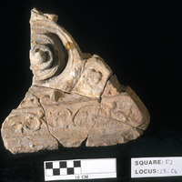 Capital 4. Marl volute frag. - Sq. F2. Studio. Locus 28.