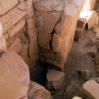 Base of arch/pre-restoration condition. View to west. - Sq. G4.