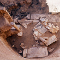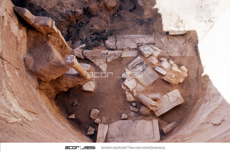 Marble in-situ. Top view to west. - Sq. F2. Locus 28.