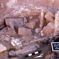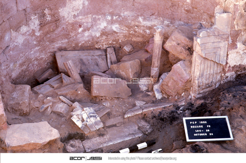 Marble pieces in-situ. View to east. - Sq. F2. Locus 28.