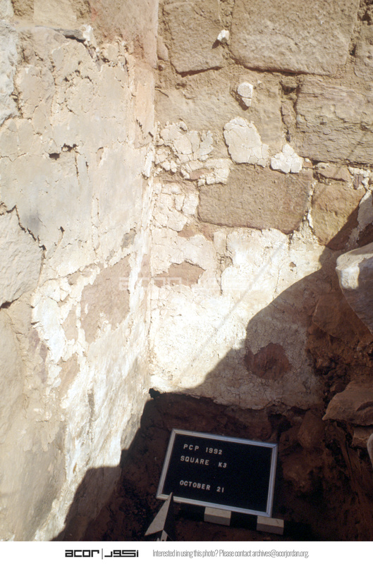 Plaster on wall in south east corner of square. View to north. - Sq. K3.
