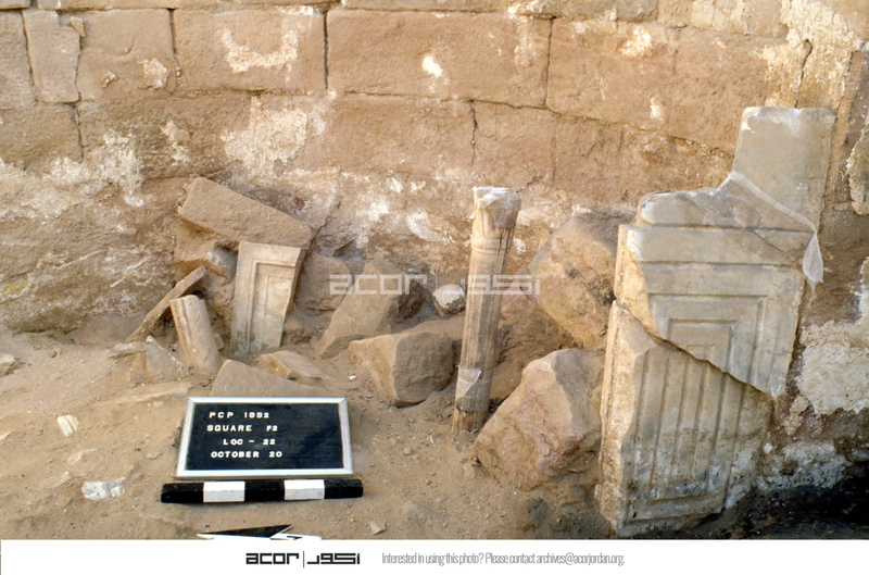 Marble pieces in-situ. View to east. - Sq. F2. Locus 22.