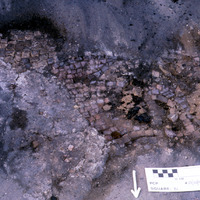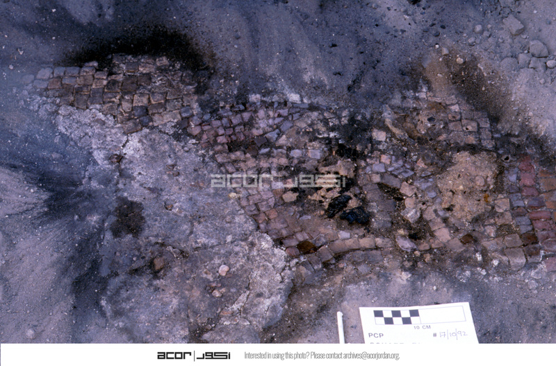 View to south. Mosaic damage - Sq. B1. Mosaic damage