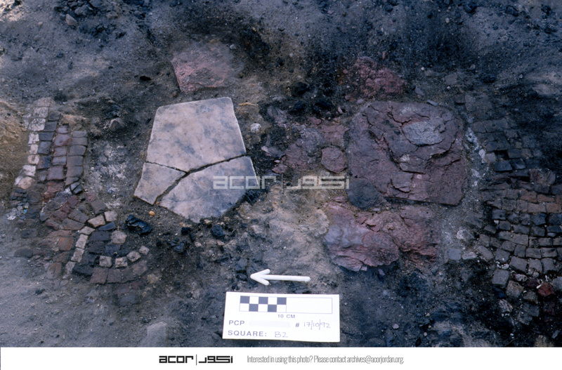 View to east. Mosaic damage - Sq. B2. Mosaic damage