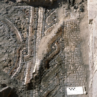 View to south. Mosaic damage - Sq. C1. Mosaic damage